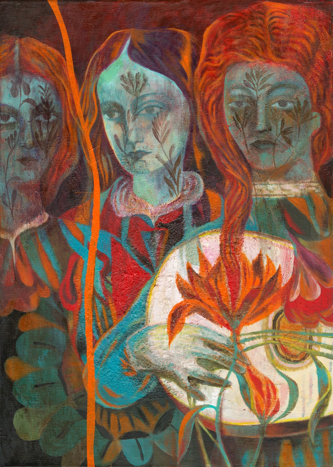 He plays with motifs of flora and fauna, archaic symbols and current themes, working them all into his pieces in great detail and virbant colour.